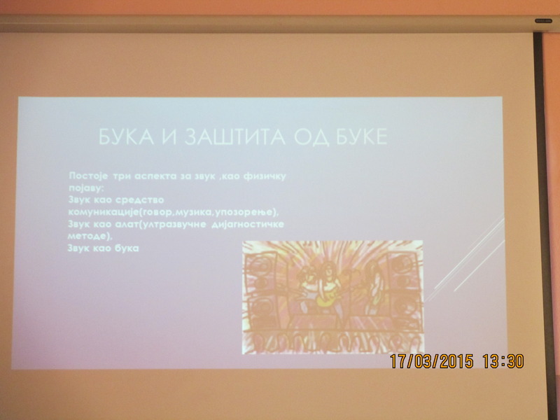 Поводом "Дана отворених врата" предвиђеним годишњим планом рада школе за месец март одржано је едукативно предавање за родитеље и ученике на тему "Бука, извори и заштита од буке".